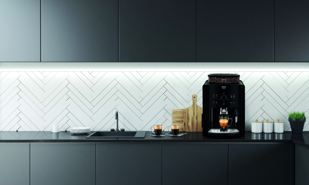 Bogat espresso in dolga kava zahvaljujoč KRUPS espresso kavnemu aparatu v kompaktni, elegantni obliki, ki se popolnoma zlije v vsako kuhinjo.
