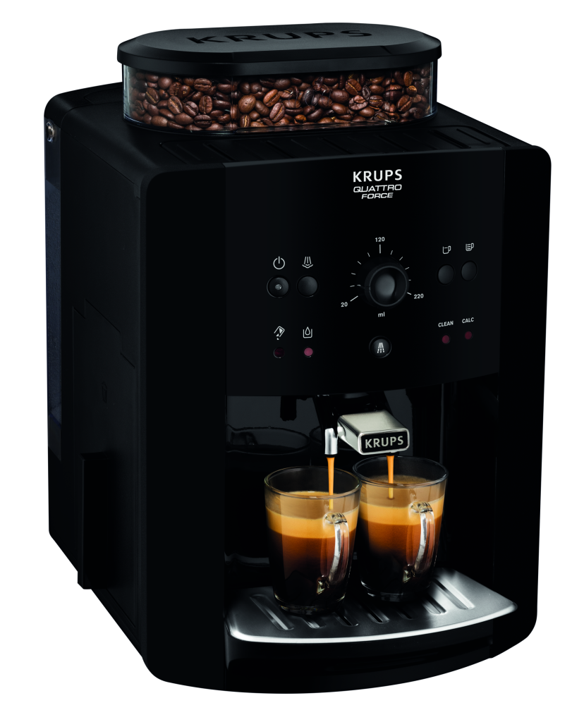 Popolnoma avtomatiziran espresso aparat s Krups Quattro Force sistemom, z namenom optimiziranja vseh korakov za popolno aromo kave.