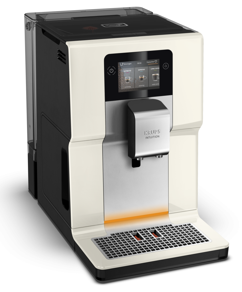 Naj vas intuicija vodi do popolne skodelice kave – vsakič. S kavnim aparatom KRUPS Intuition Preference uživajte v popolni ekstrakciji in ekskluzivni tehnologiji Quattro Force, ki obljublja izjemno izkušnjo. Najboljši barvni zaslon na dotik v svojem razredu in intuitivne indikatorske barvne lučke vam omogočajo personalizacijo tako kavnega aparata kot shranjenih receptov, kar vam omogoča preprost dostop do vseh vaših priljubljenih pijač. Sočasno zasnova aparata, orientirana za frontalno vzdrževanje in s funkcijo proti kapljanju, zagotavljata izjemno priročno uporabo. Vse skupaj pa lepo zaključita integriran sistem OTC za popolno peno in prilagodljiva šoba za dolge ter kratke kave. Manj časa boste porabili za čiščenje in več ga bo ostalo za uživanje v vaši priljubljeni kavi!