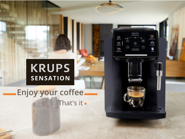 Od popolnega ristretta do tople jutranje filter kave – kavni aparat KRUPS Sensation bo poskrbel za vse. Zahvaljujoč tehnologiji Barista inside, ki optimizira vsak korak procesa priprave, ter priročnim funkcijam, kot so praktičen zaslon na dotik, prilagodljivi recepti in svetlobna opozorila, bo uživanje v popolni aromi kave enostavnejše kot nikoli doslej. Aparat se ponaša z avtomatskim programom za čiščenje.