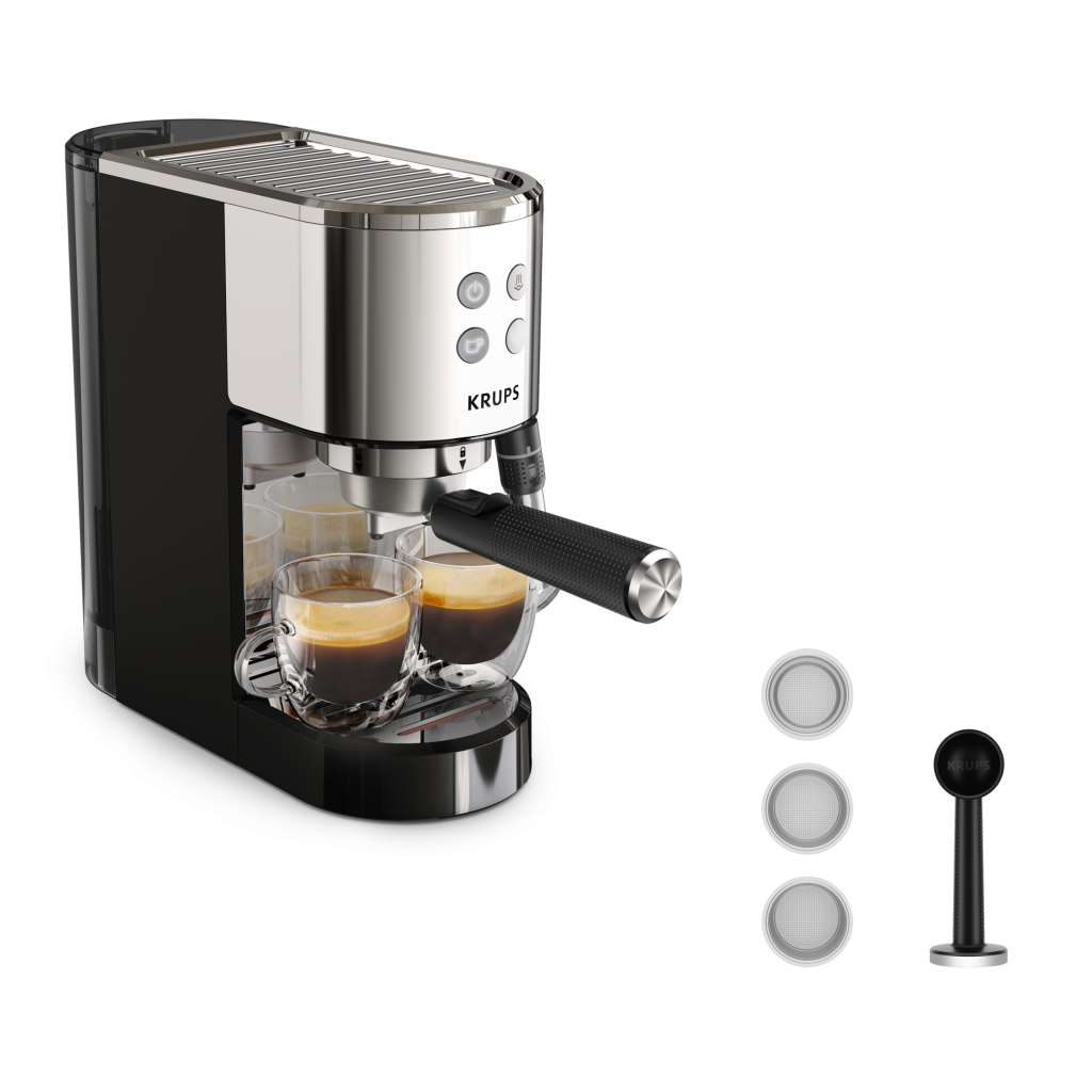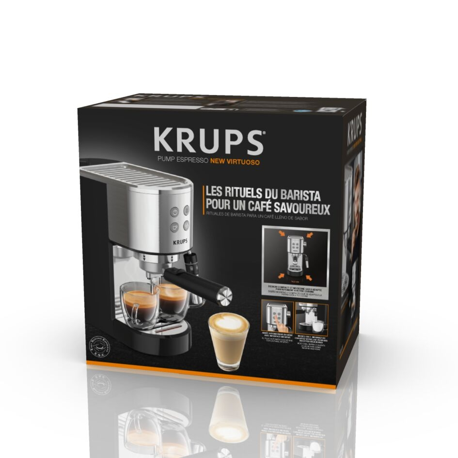 S KRUPS Virtuoso + odkrijte svojega novega zaveznika, ki vam bo v hipu pomagal pripraviti espresso kot pravi barista. Ta kompakten in eleganten aparat za espresso s črpalko ima izjemno intuitiven vmesnik s štirimi preprostimi gumbi, ki vas vodijo do mikavne pene in božanskih arom, skupaj s samodejno zaustavitvijo pretoka za vrhunsko kavo. Aparat za espresso, enostaven za uporabo, bo kmalu postal vaš popoln spremljevalec na poti do popolnega espressa.