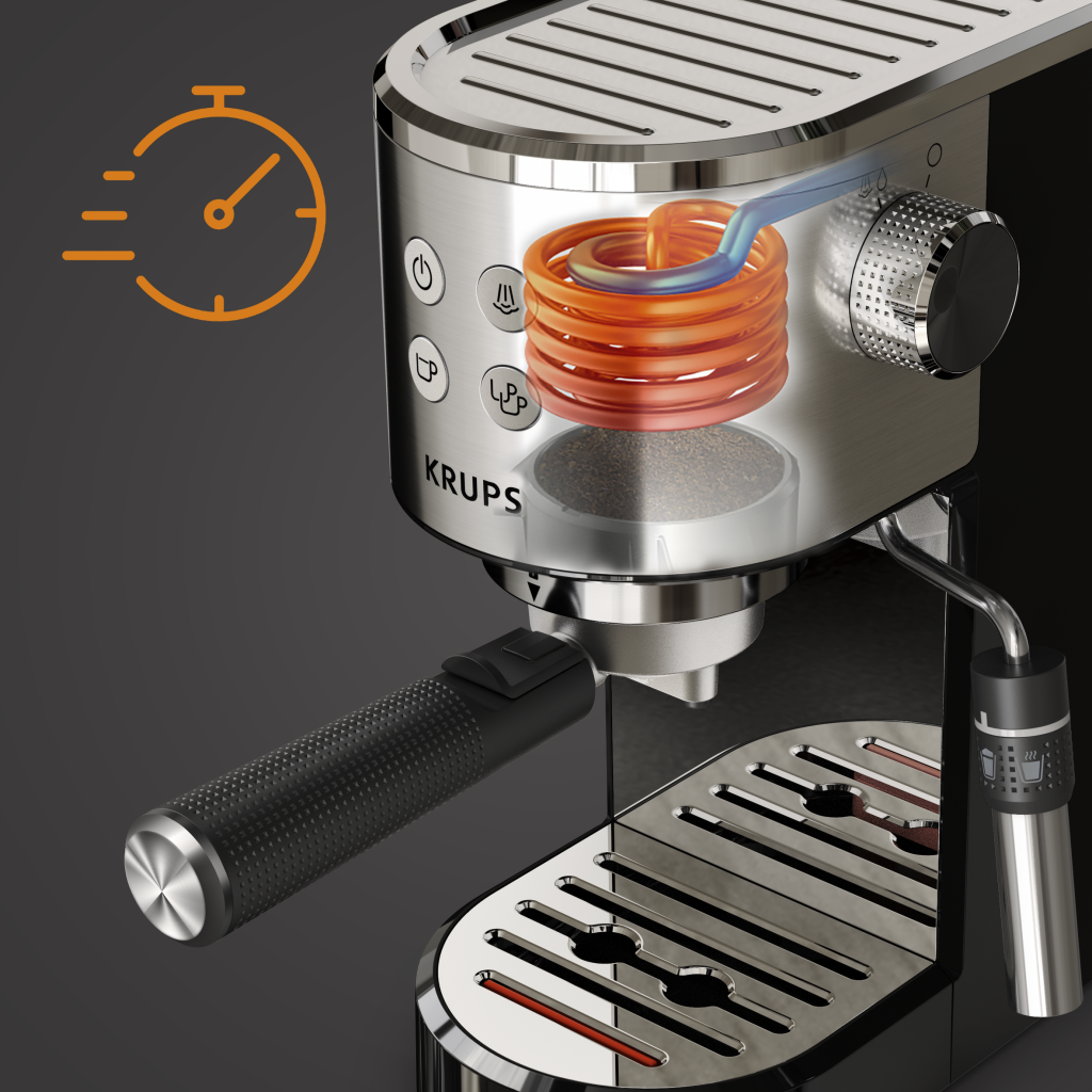 • Sistem Krups Thermoblock poskrbi za hiter čas segrevanja aparata.