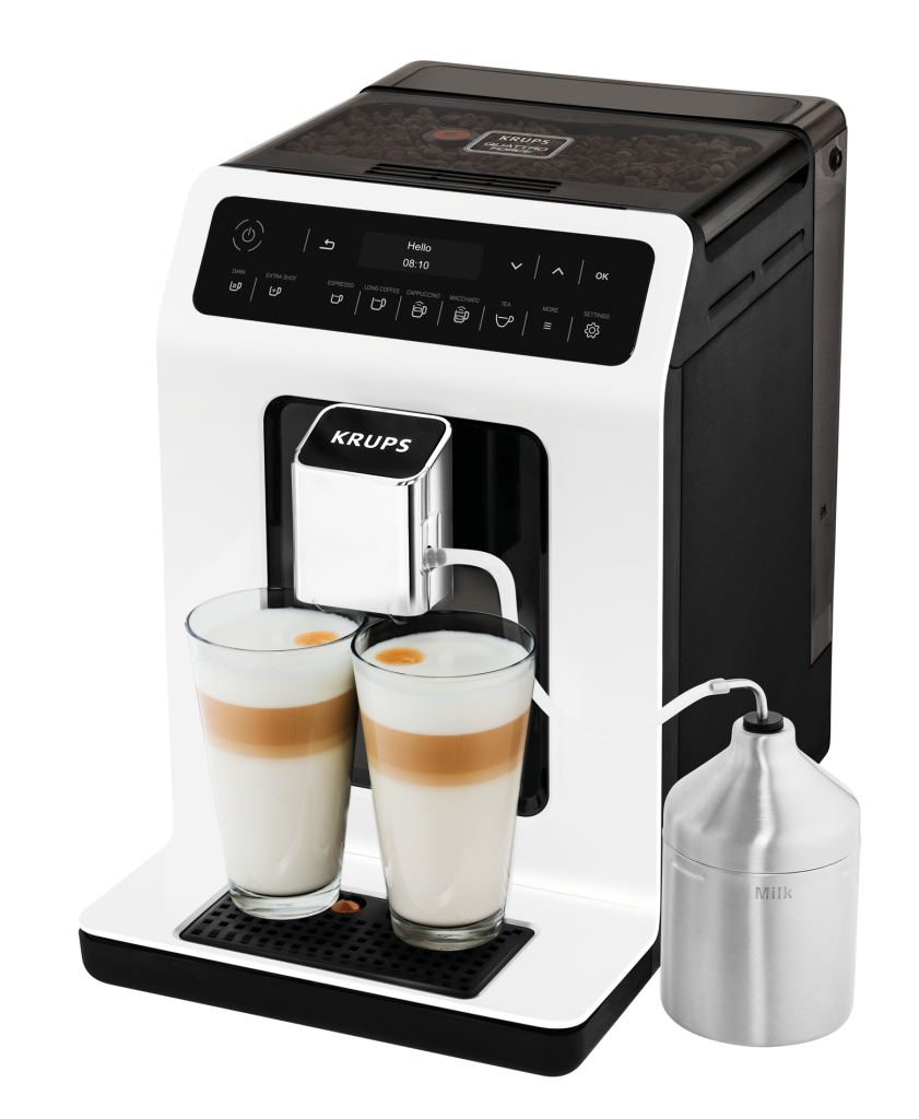 Zasnovan za pripravo popolne kave doma, KRUPS Evidence avtomatski espresso aparat omogoča brezhibne rezultate do zadnje podrobnosti. Pripravite svoje najljubše napitke s pomočjo 15 prednastavitev – od zrna do skodelice. S KRUPS Quattro Force sistemom lahko okusite izvrstno kavo, prav tako pa je elegantno estetičen in se podaja v vsako kuhinjo.
